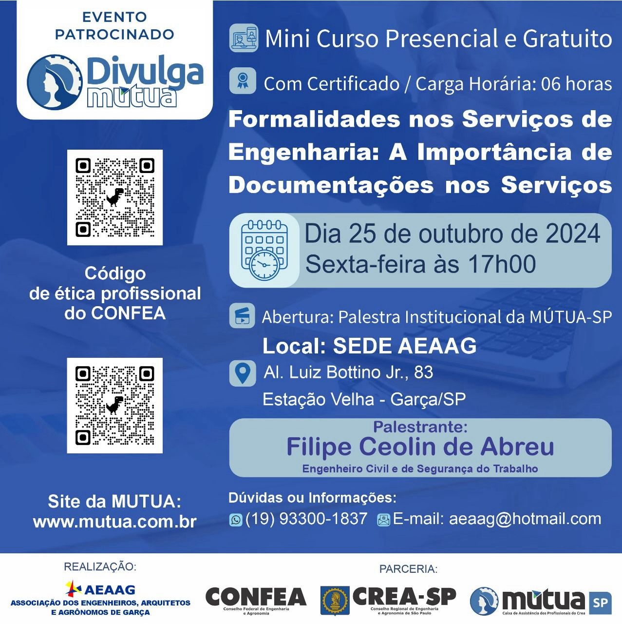 Mini Curso Presencial e Gratuito: Formalidades nos Serviços de Engenharia - A Importância de documentações nos Serviços